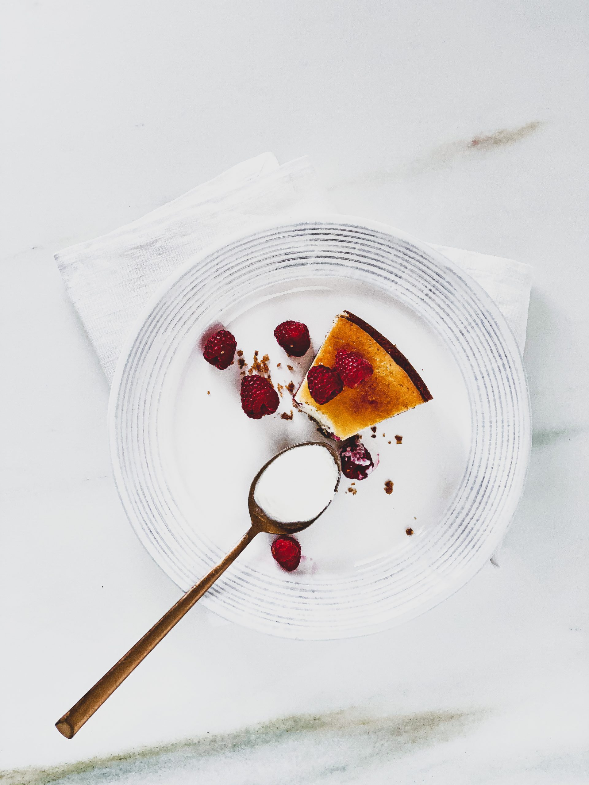 ¡Felices momentos! eso es lo que proporciona una pequeña porción de esta deliciosa y refrescante tarta de queso crema y frambuesas. Además de ella puedo deciros que no sólo es un postre, es un sobresaliente en la nota de valor nutricional, lácteos, frutos rojos de procedencia bio; ¡hay que disfrutar de comer sano!